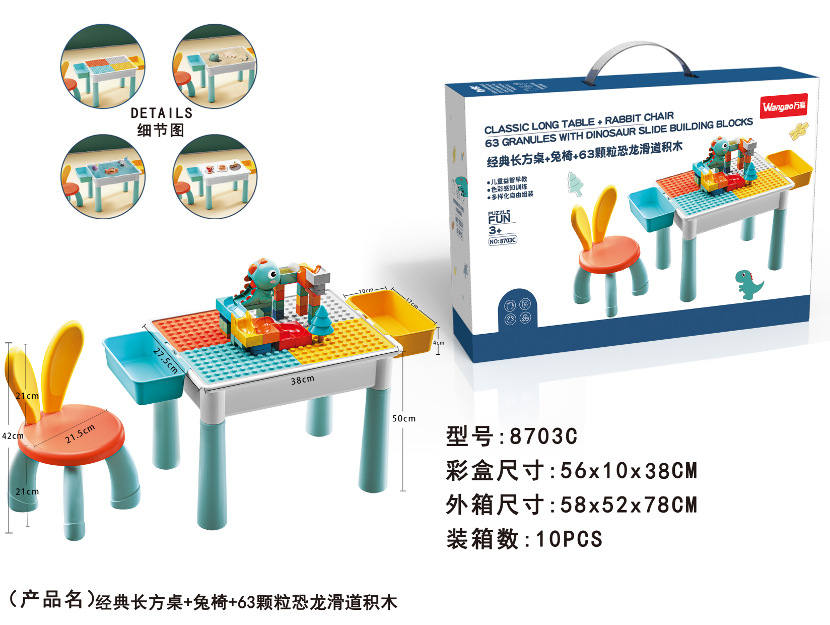 品 名:長方桌+兔椅+63顆粒